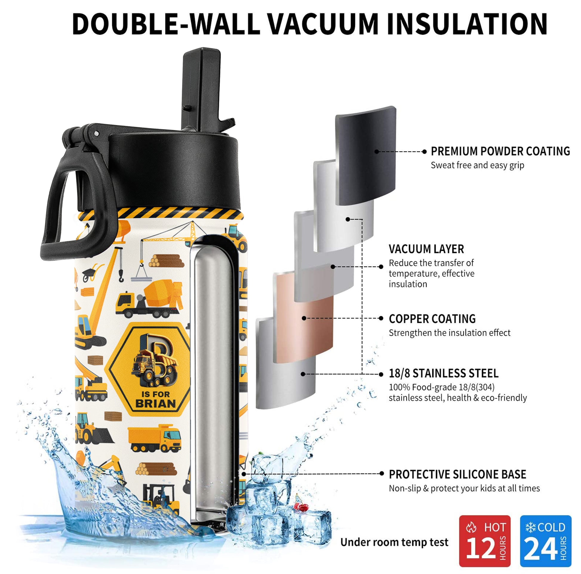 Kids Water Bottle With Straw Lid