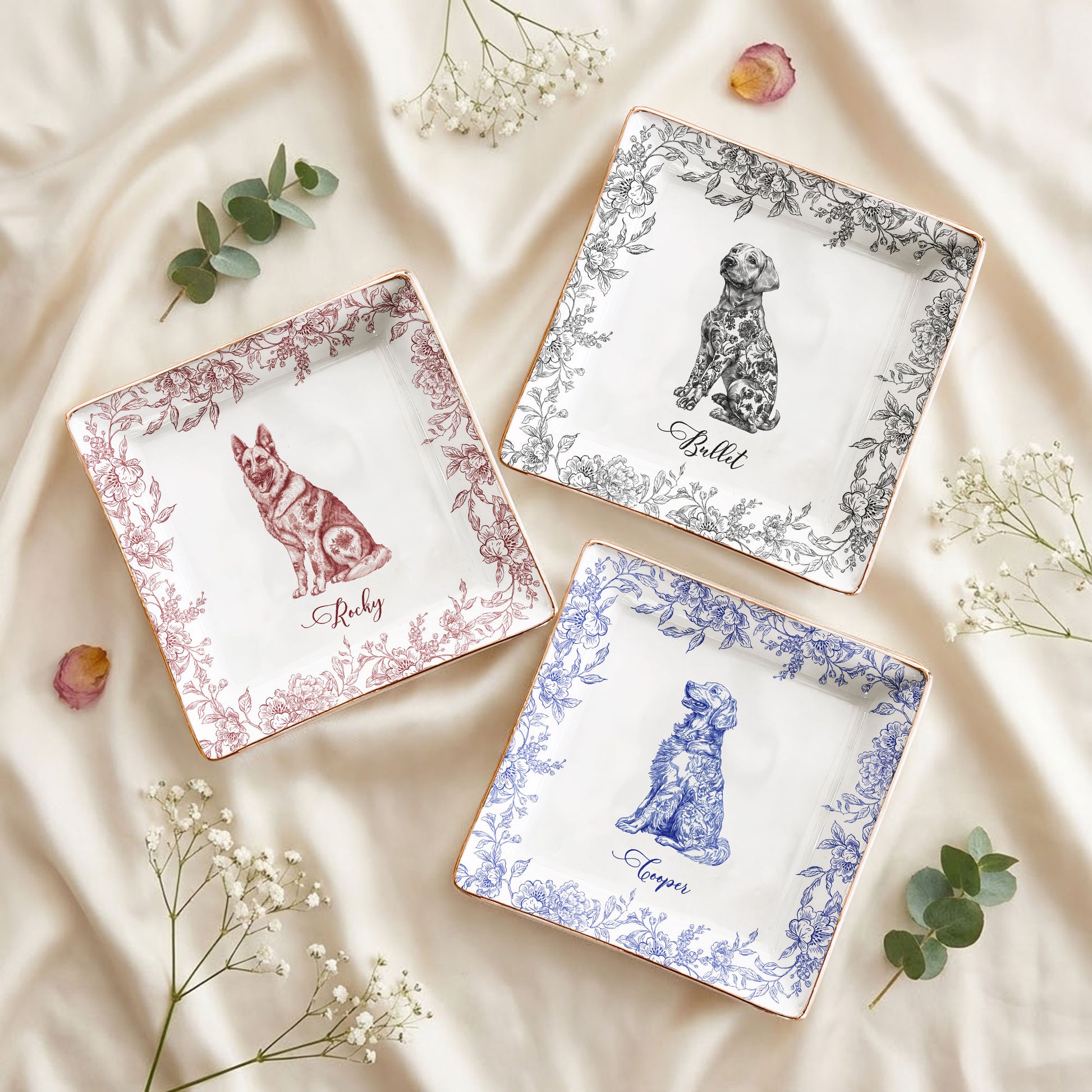 Dog Lover Gift Dog Breeds Chinoiserie Toile De Jouy Style - Personalized Jewelry Dish