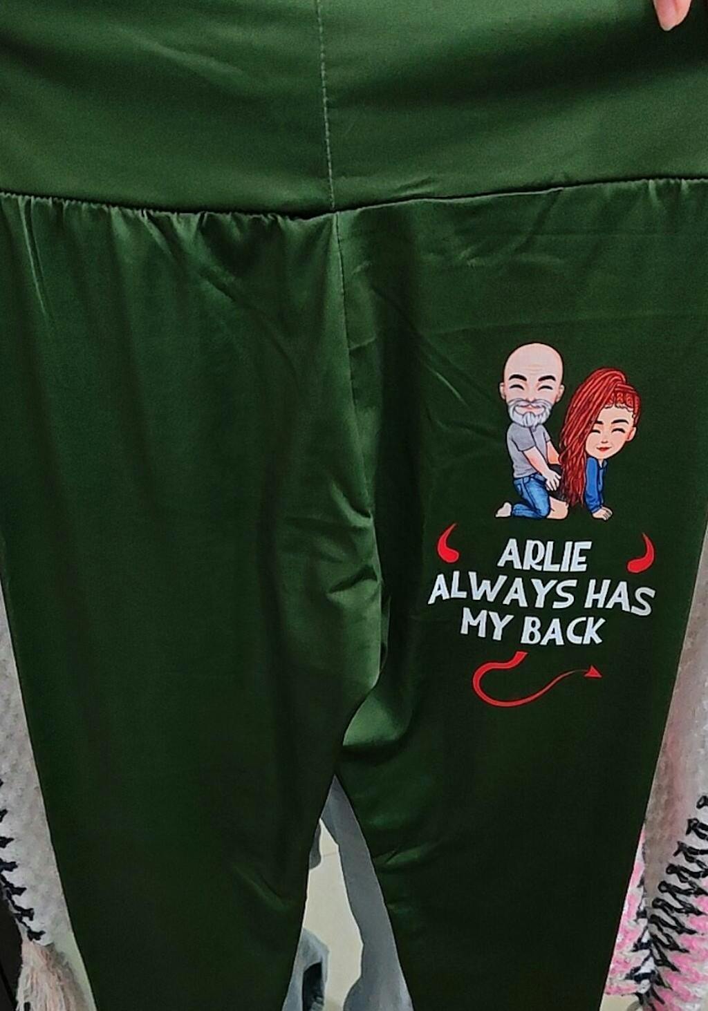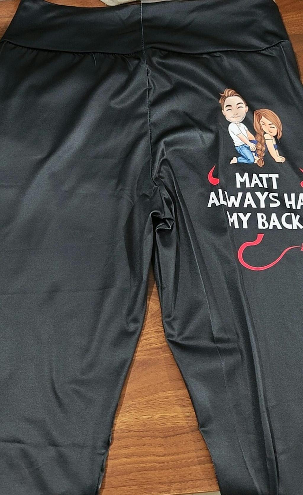 These He Always Has My Back personalized leggings are the perfect mix of naughty and sweet. Featuring a fun and cheeky design on the back, they're customized with your man's name to remind everyone who’s got your back literally. Comfortable and form-fitting, they’re perfect for lounging, working out, or cozy nights in. A fun gift for wives and girlfriends, ideal for anniversaries, Valentine's Day, date nights, or just to spice things up!