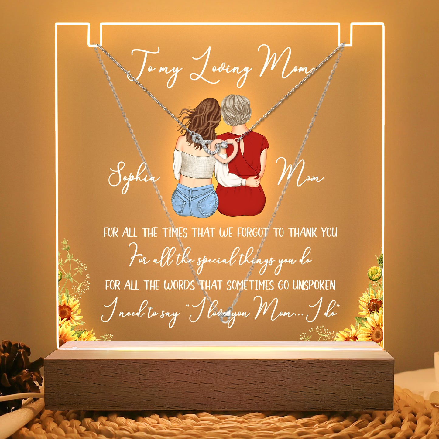 LED Light Acrylic Plaque With Infinity Necklace