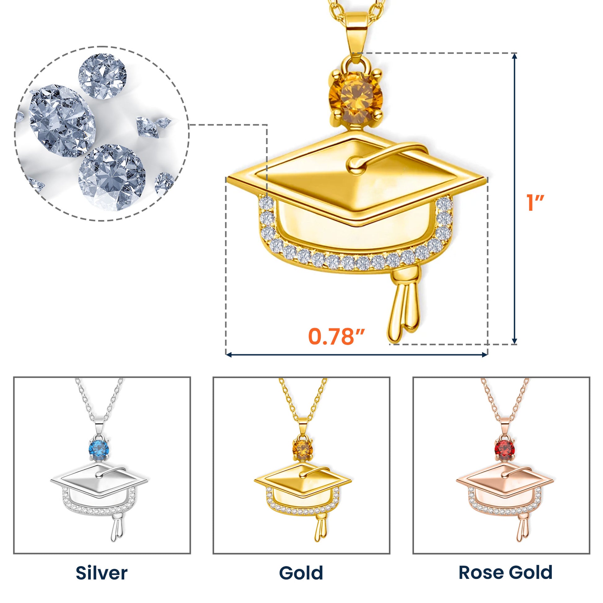 Graduation Cap Pendant Necklace With Birthstone